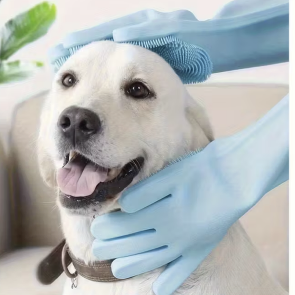 Rękawiczki do Kąpieli dla Psów, Szczotka Silikonowa do Masażu, Akcesoria do Kąpieli dla Psów, Rękawiczki do Czyszczenia i Usuwania Sierści, Delikatne Masażowanie, Gęsta Konstrukcja Włosia, Rękawiczki do Użytku Domowego, Odpowiednie na Każdą Porę Roku